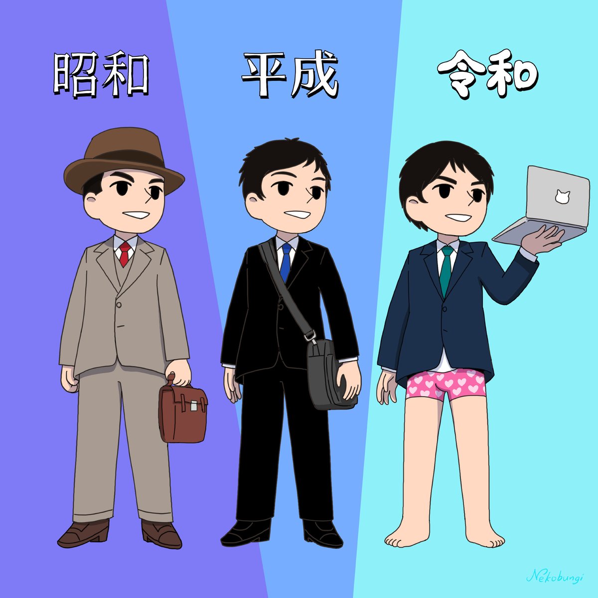 昭和 平成 令和別のサラリーマンのスタイルを描いたイラストが的確すぎる 人類史に刻みたい 時代が追いついた Togetter